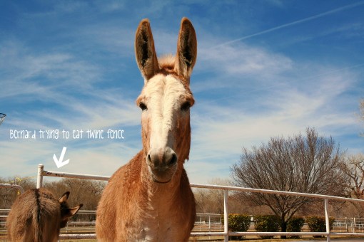 I’ve heard that donkeys/burros are very good watch “dogs”. It must be in Ellsworth’s genes to be so observant. (And Bernard can just be a fun loving donkey since big brother El is on the job keeping him safe!)