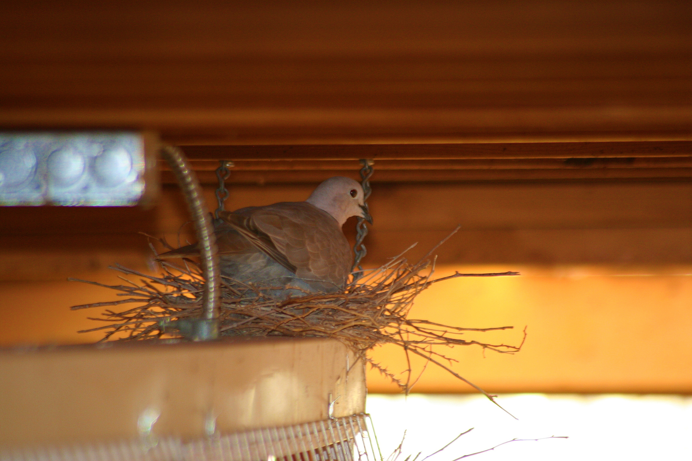 We have a dove nesting above one of the light fixtures in the barn. Not surprising due to the fact that we have a plethora of doves here.
