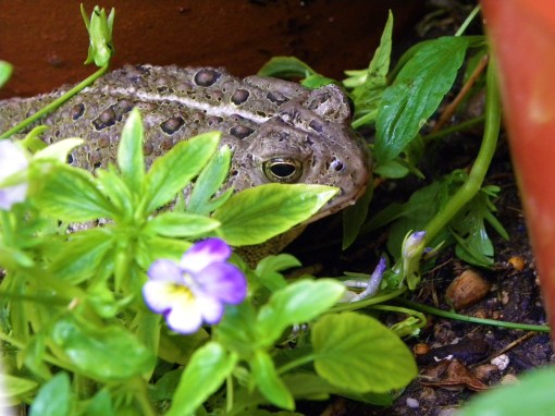 I keep finding it on the threshold of our backdoor. Have actually had conversations with the toad in the evening. He sits on the threshold and will not move even when we go in and out several times. I keep telling him/her that he’s not allowed in the house and to go find a new place to hang out 🙂