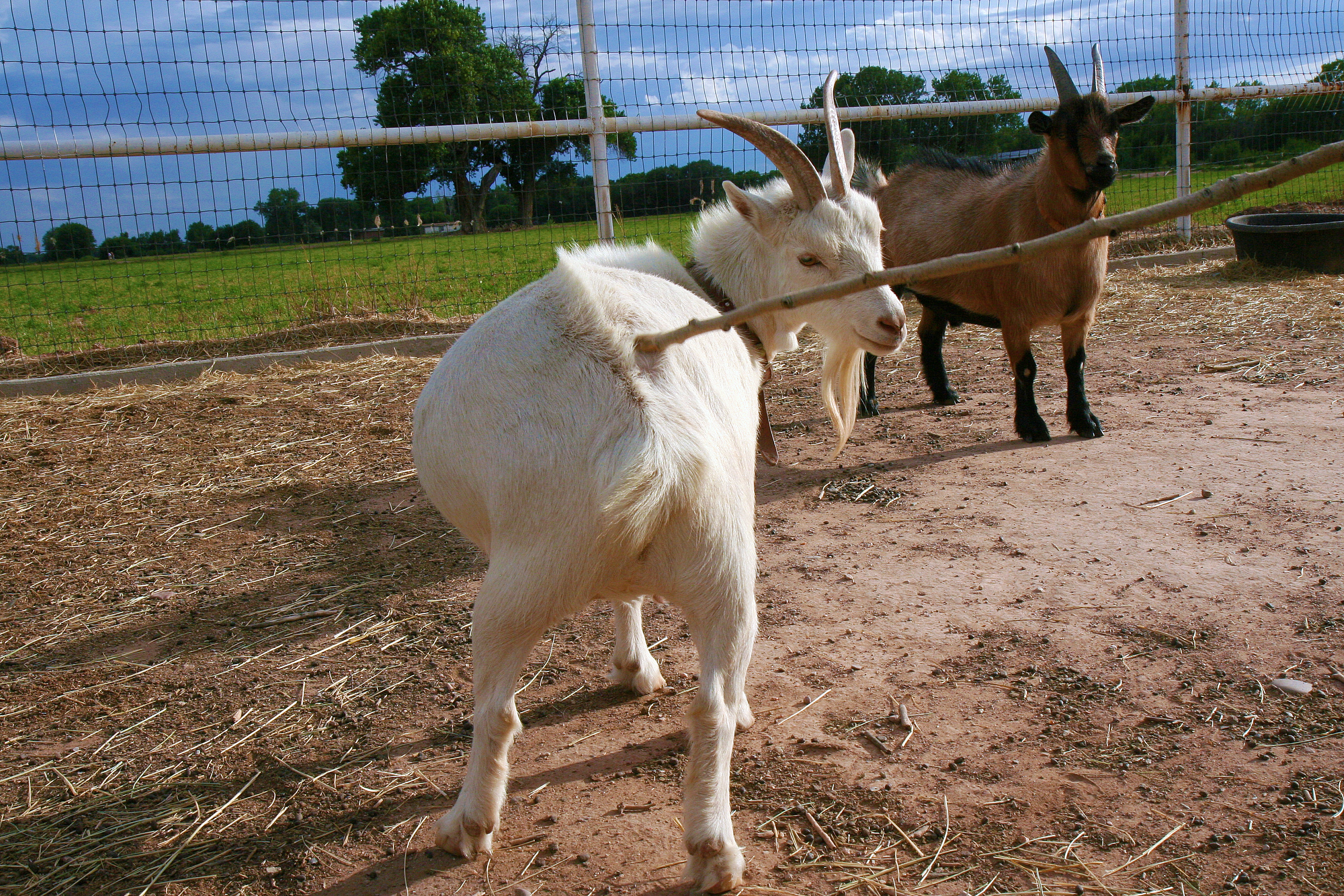 Interesting that you ask the question about horns. On one hand, there are days I wish they didn’t have their horns… especially having a goat that is lacking in the “love department” as Meggie is some days. But then again, if you watch the goats, their horns come in mighty handy for them. You should see the looks of pleasure on their faces as they scratch themselves with their horns… especially those middle of the back, hard to reach regions… it’s nirvana for them!