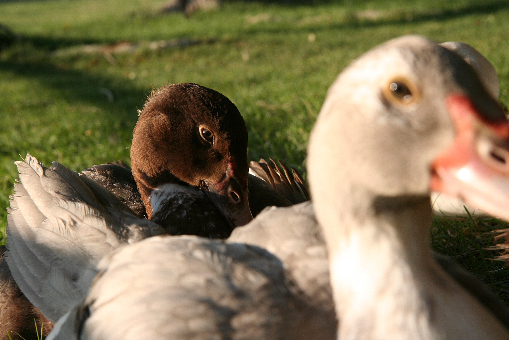 OMG, they all have grown from little ducklings to beautiful and handsome ducks! What a lovely duck house it is! My guess is that you will build a pond not far from their lovely home in the very near future, right? 😀