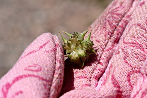 The seed is an amazing product of natural selection. The seed coat is extremely durable (as you well know if you’ve ever stepped on one with a bare foot) and in the right conditions can last upwards of 20 years. Each fruit or burr separates into five separate segments. Each segment has two to four seeds inside it.