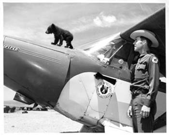 On May 9, a fire crew brought a badly singed bear cub back to their camp. They had found the frightened cub clinging to the side of a burnt pine tree. Smokey was flown by Game Warden Ray Bell to a veterinary hospital in Santa Fe. Upon Smokey’s recovery in Santa Fe, the Forest Service flew him to the National Zoo in Washington, DC.