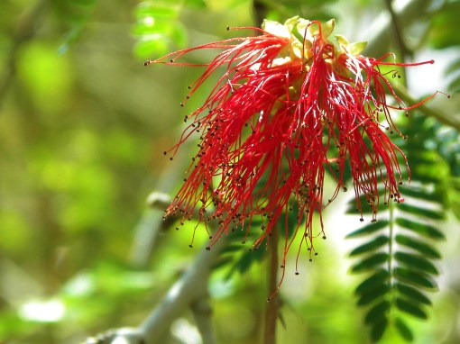 A Baja fairy duster, named so because its red flowers are shaped like miniature feather dusters.