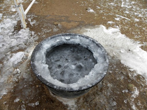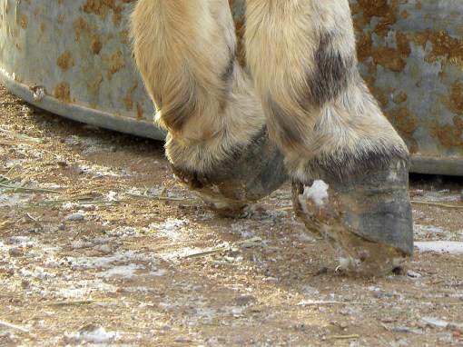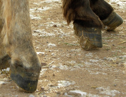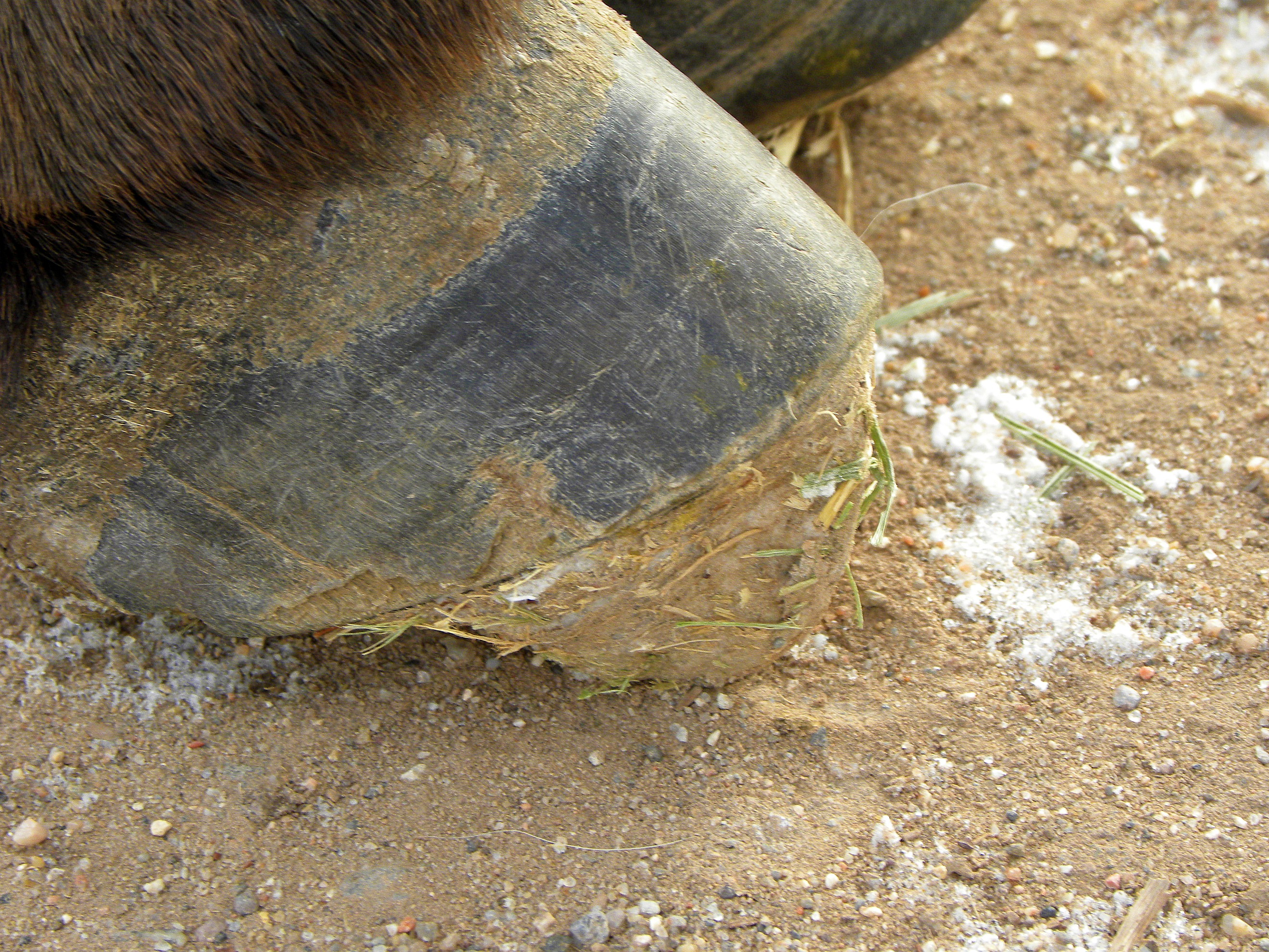 The horrible hoof cakes were a result of the boys walking back and forth between the snow-covered pasture and the corral.