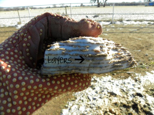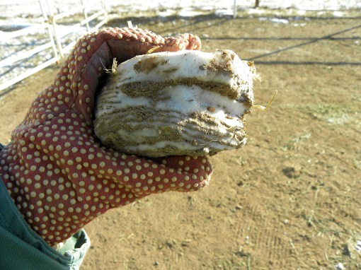 This is a perfect example of how the horrible hoof cakes were made. See the layers of snow and corral dirt?