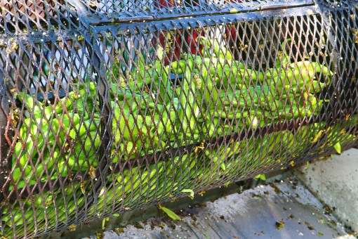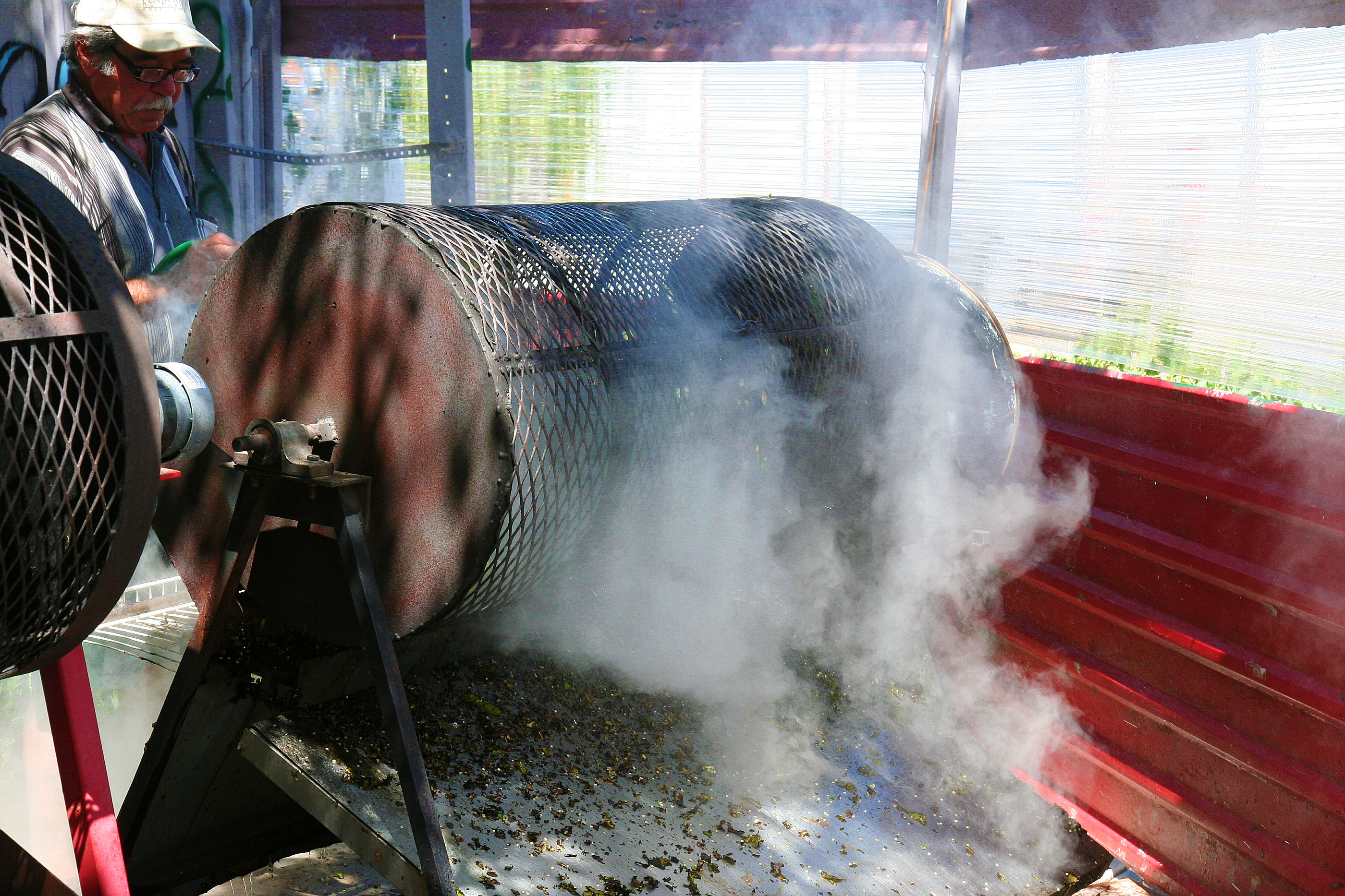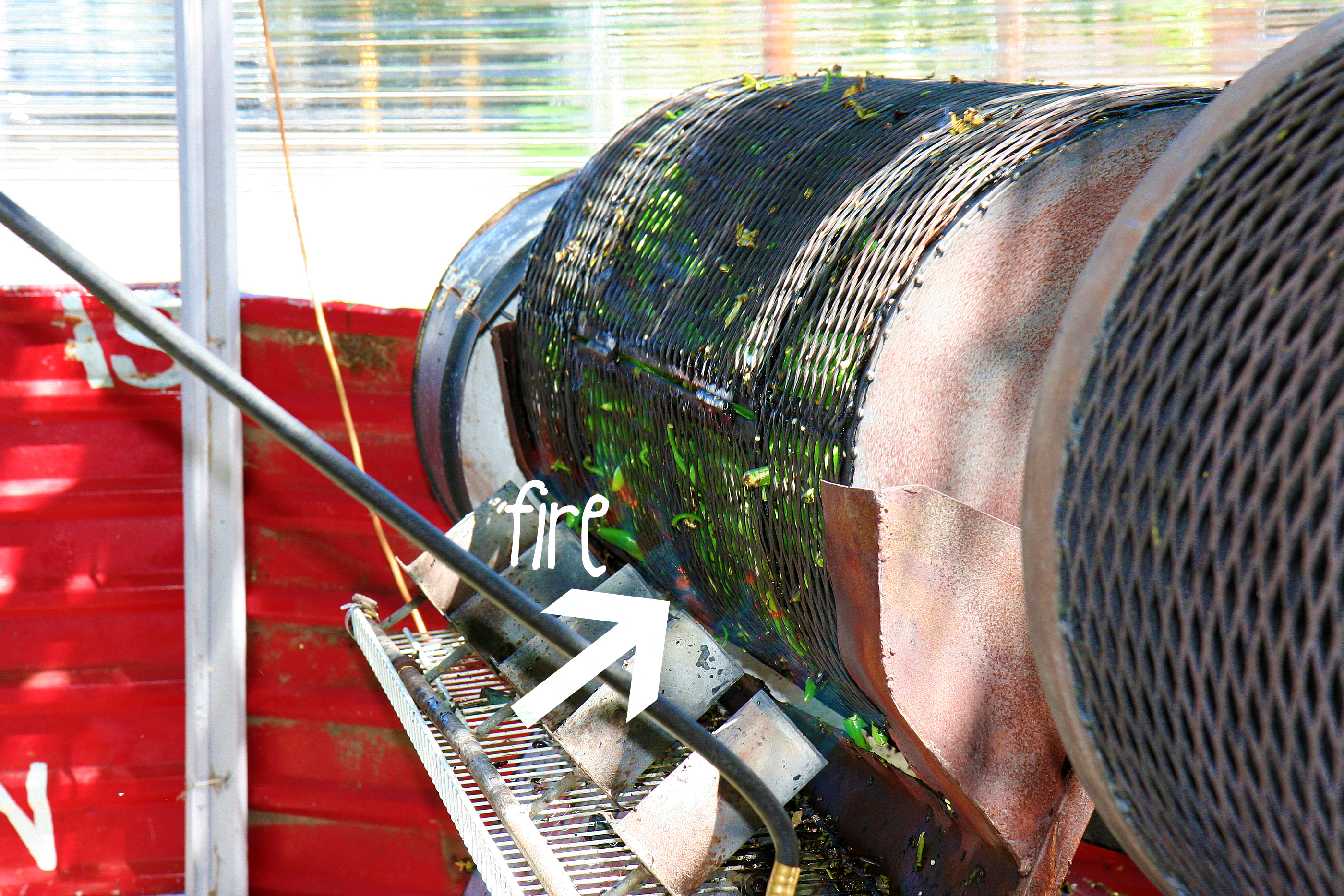 …and the drum turned the green chiles over the fire for about four minutes. Then the chiles were rinsed…