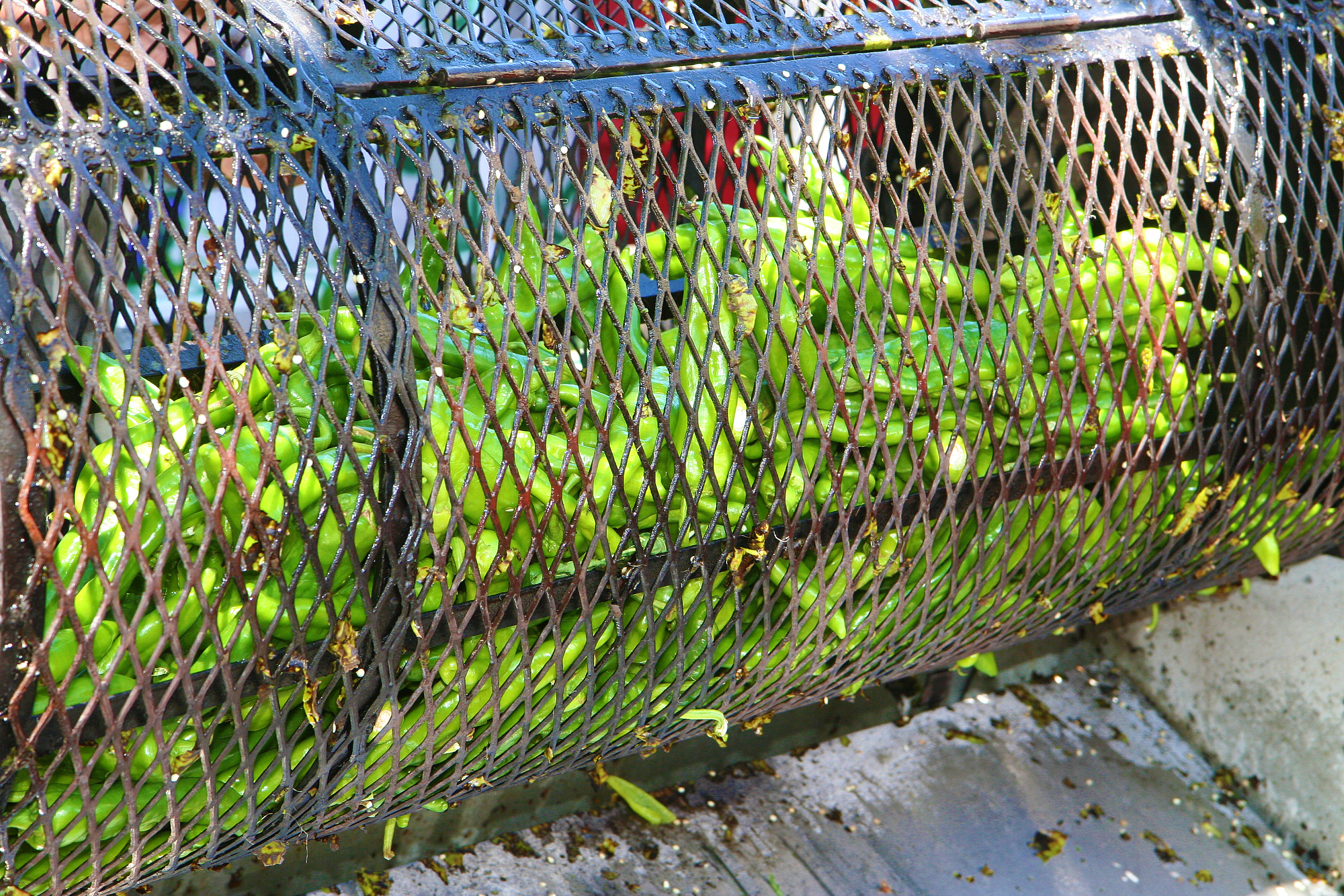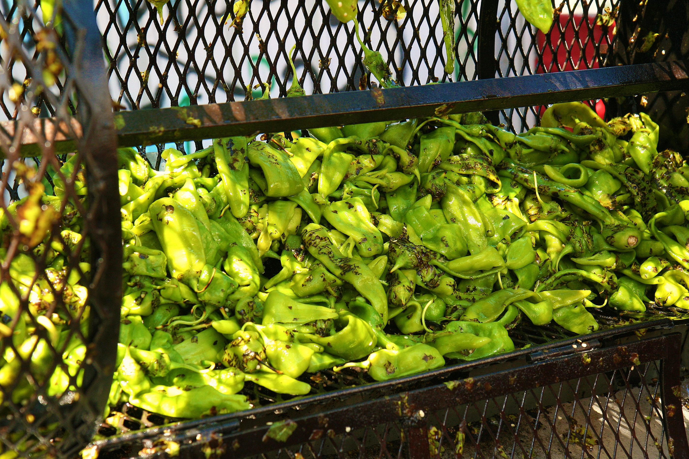 30 pounds of freshly picked green chiles were put into the chile roaster…