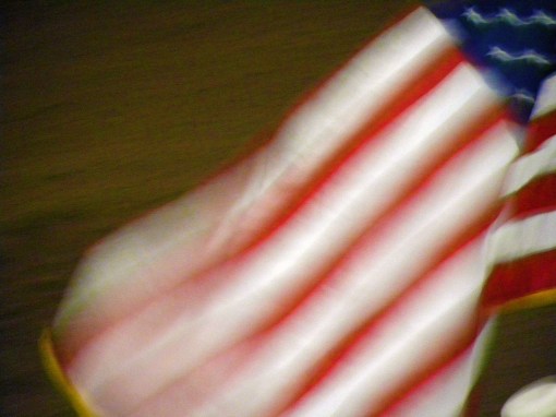 This flag is being carried on horseback by a member of the Bernalillo County Sheriff’s Posse at the New Mexico State Fair rodeo.