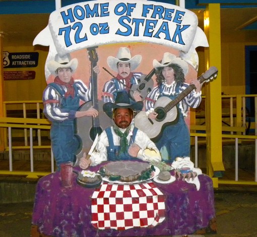 The Big Texan is the home of the World Famous, FREE 72 oz. STEAK DINNER (if eaten in 1 hour). If Don had attempted this daring feat, it would have looked something like this: