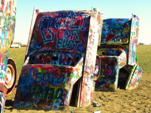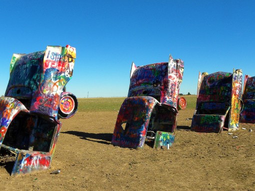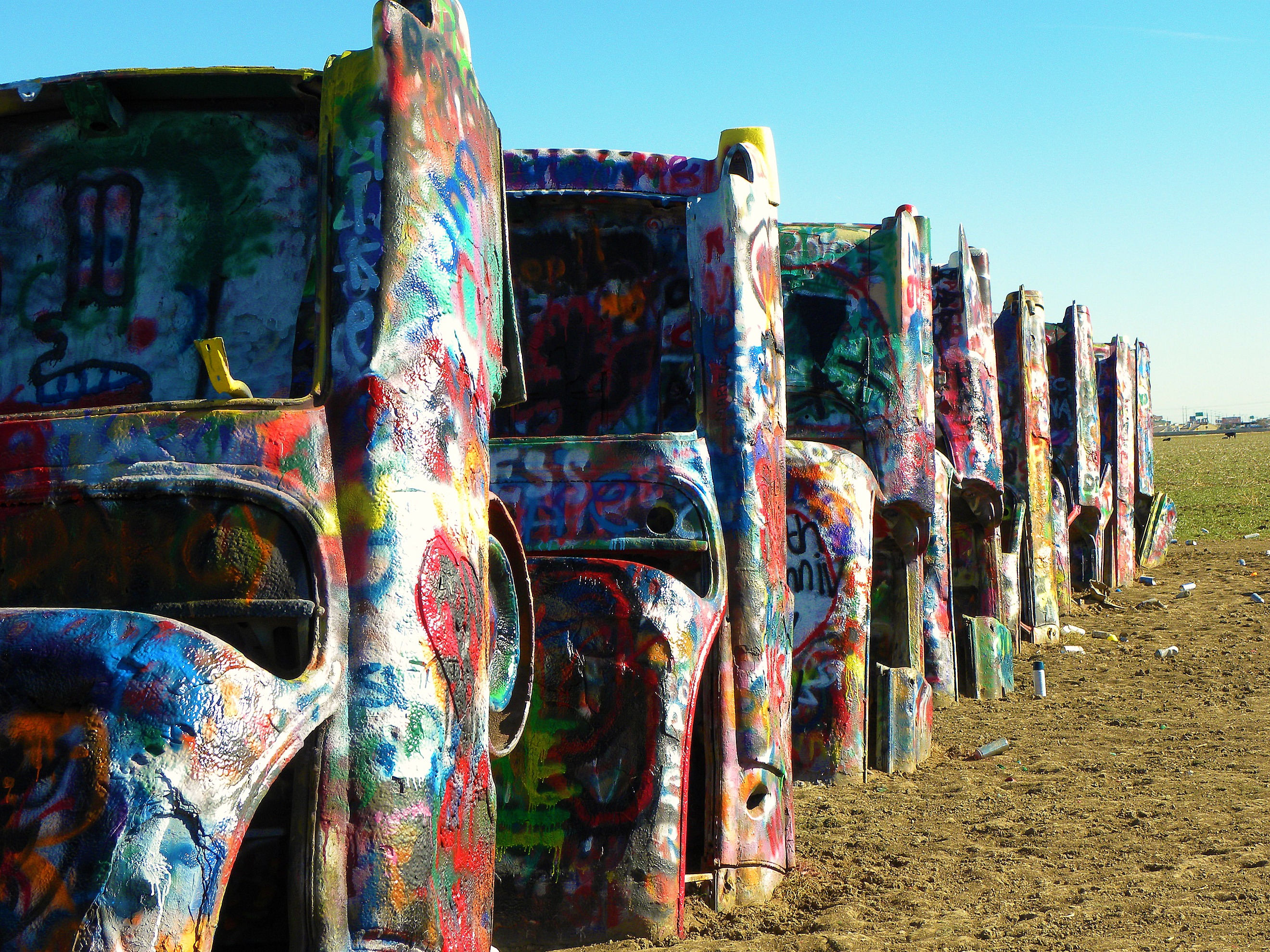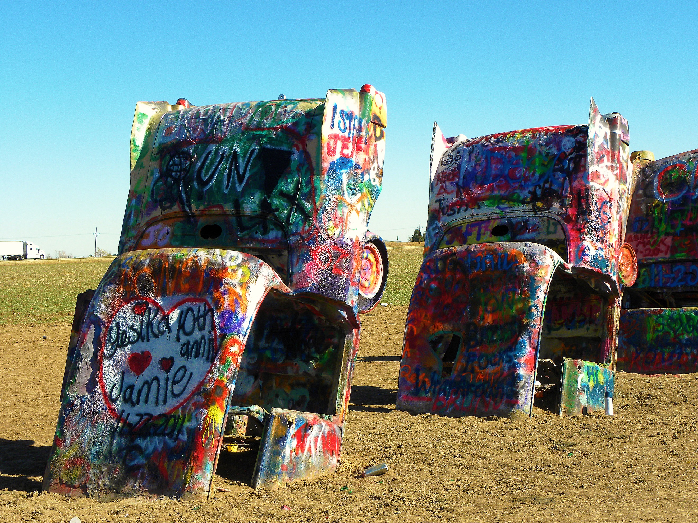 Just outside of  Amarillo’s city limits is a roadside attraction called Cadillac Ranch.