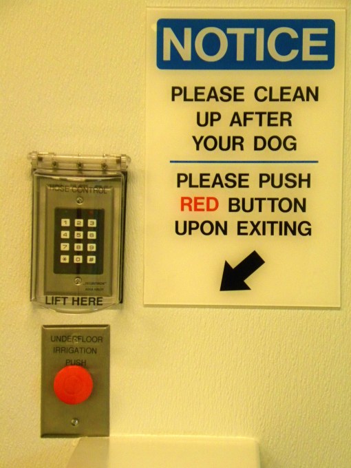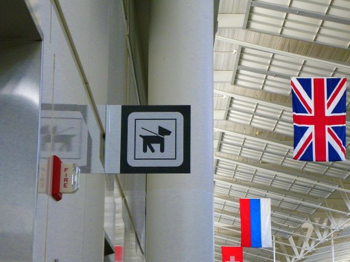 The sign marked the location of one of the airport’s service animal relief areas. While most of the Dulles locations are outside the Main Terminal, two are inside the midfield concourses for the convenience of ticketed connecting passengers.