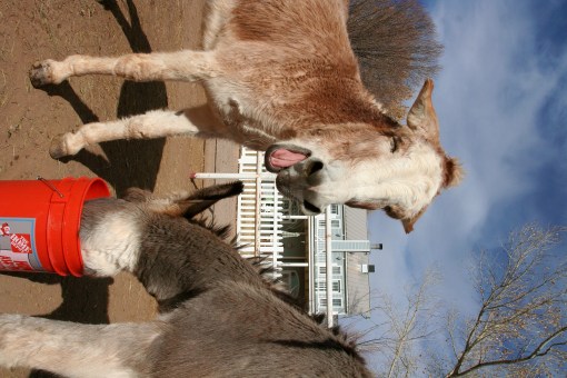 Me: Well, will you look at that? Nigel has finally overcome his fear of bucket alligators. (Nigel was terrified of buckets when he first came to Morning Bray Farm.)