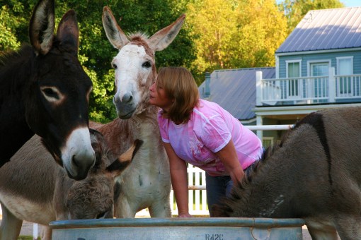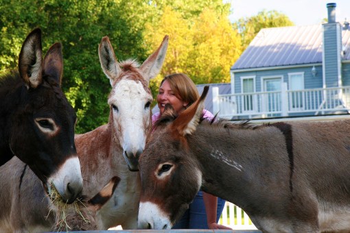 Upon returning home, Don decided it would be awesome to have me touch the electric fence. Generally speaking, I’d like to think I am smarter than this. Unfortunately, my love for family and trust for my brother brings out the stupid in me. He knows this and continues to trick his little sister without mercy. Note in the photo that Don is touching the fence. I inspected him carefully. He wasn’t sweating. He wasn’t twitching. He was very matter of fact that it was no big deal. So, okay, I’ll touch the fence. Had Justina said ANYTHING at this point it would have been helpful. She opted to stay in the barn and snicker quietly. If any of you visit, don’t fall for this. My howling in pain sent the donkeys racing halfway up the hill. Don giggled like a school girl.