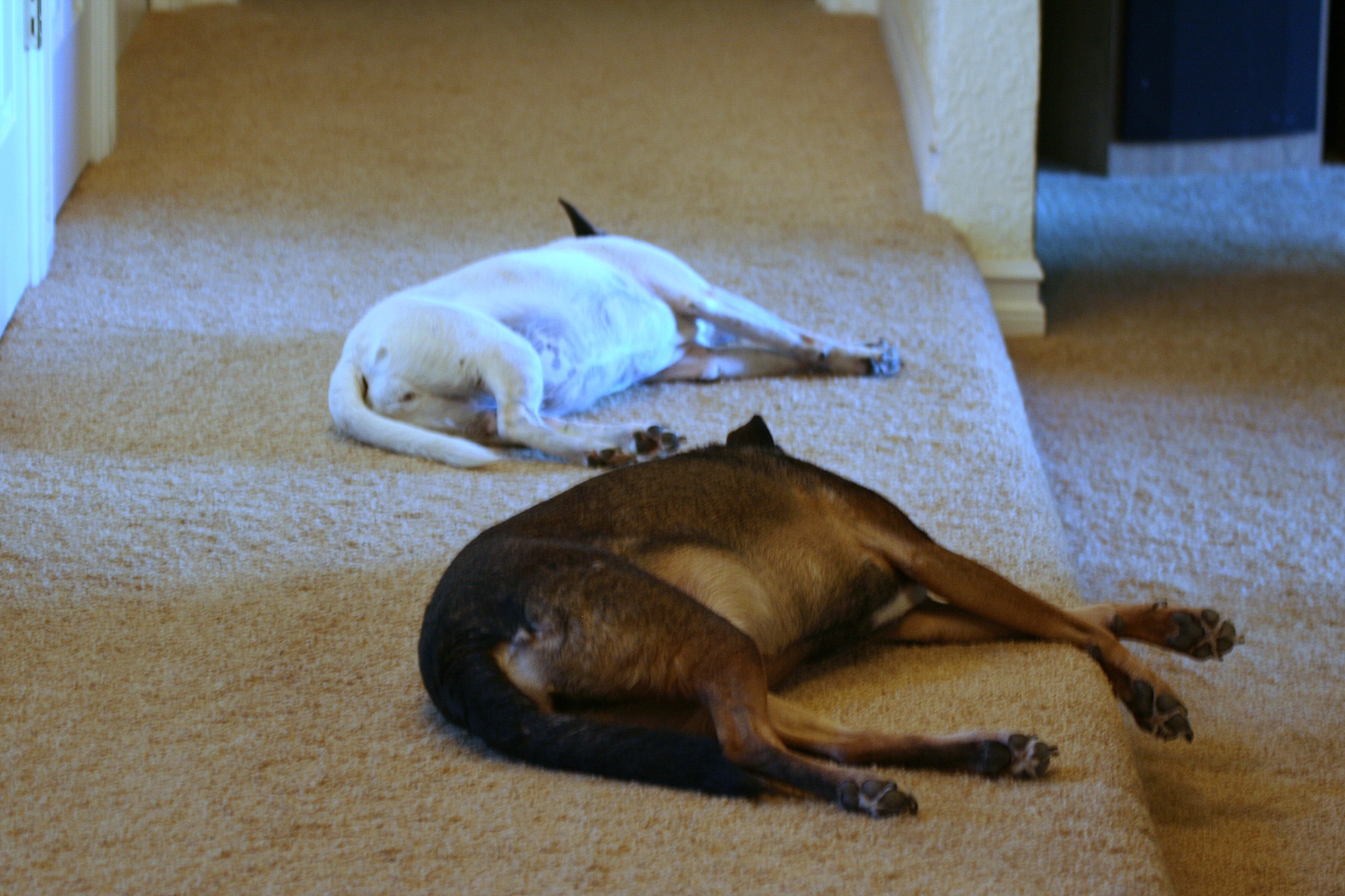 Which naturally led to Whisky and Kike playing. Their idea of playing is Whisky pretending to chew on Kike’s snout.