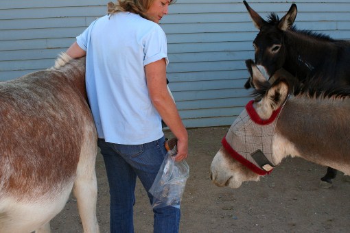 You know you have an awesome sister-in-law when she’s willing to ride in the car on the way to the vet with five bags of donkey poo in the back seat.