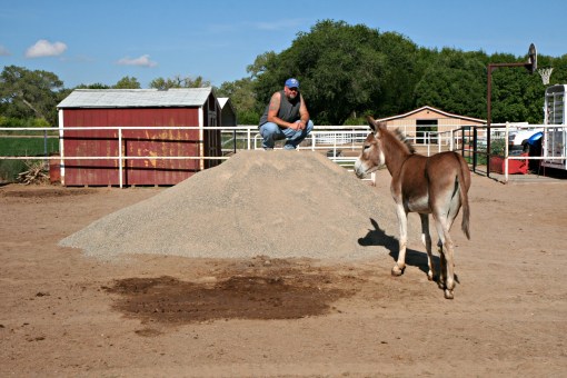 I was attempting to move one of the donkey feeders and let me tell you… it’s slicker than snot on these here hills after a good rain and, well, I fell flat on my face in the mud and manure.