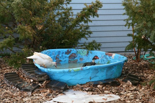 An increasing day length (January – June) brings sexually mature ducks into egg production and a decreasing day length (July – December) slows or stops their egg production. When I started leaving the heat lamps on, I increased day length for our girls and they ramped up their egg laying. When I stopped leaving the heat lamps on, I decreased their day length and they stopped laying eggs.