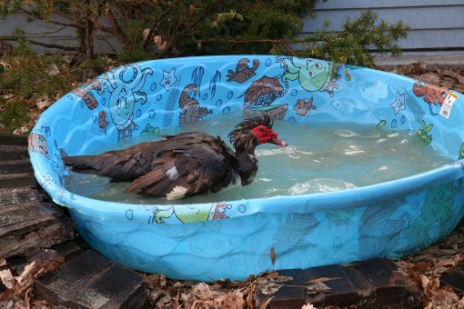 Our duck expert’s first question to me related to *light*. It was then I had to tell him (shamefully) that our ducks were kept in lighted conditions 24/7 the entire winter. “Yes, we keep heat lamps on in the barn when it’s cold – for both our goats and the ducks,” I said.