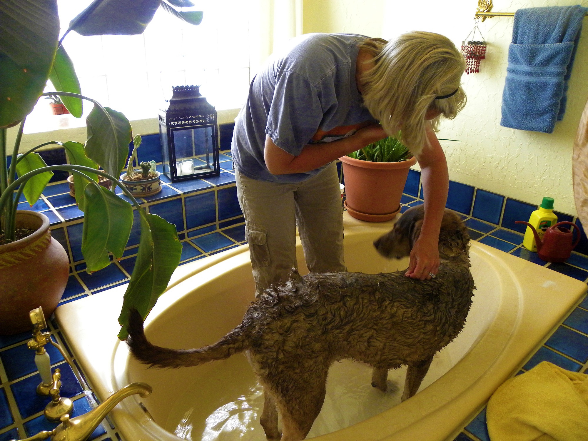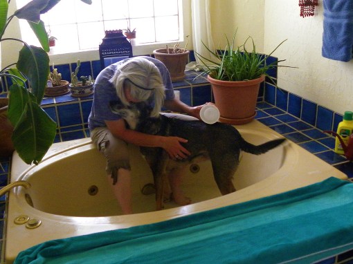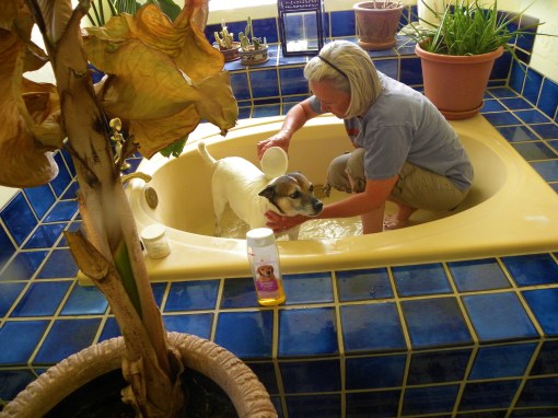 Giving Whisky a bath is a dream. He loves water, so he walks right into the tub when he’s asked… and stands quietly and calmly while he’s being washed.