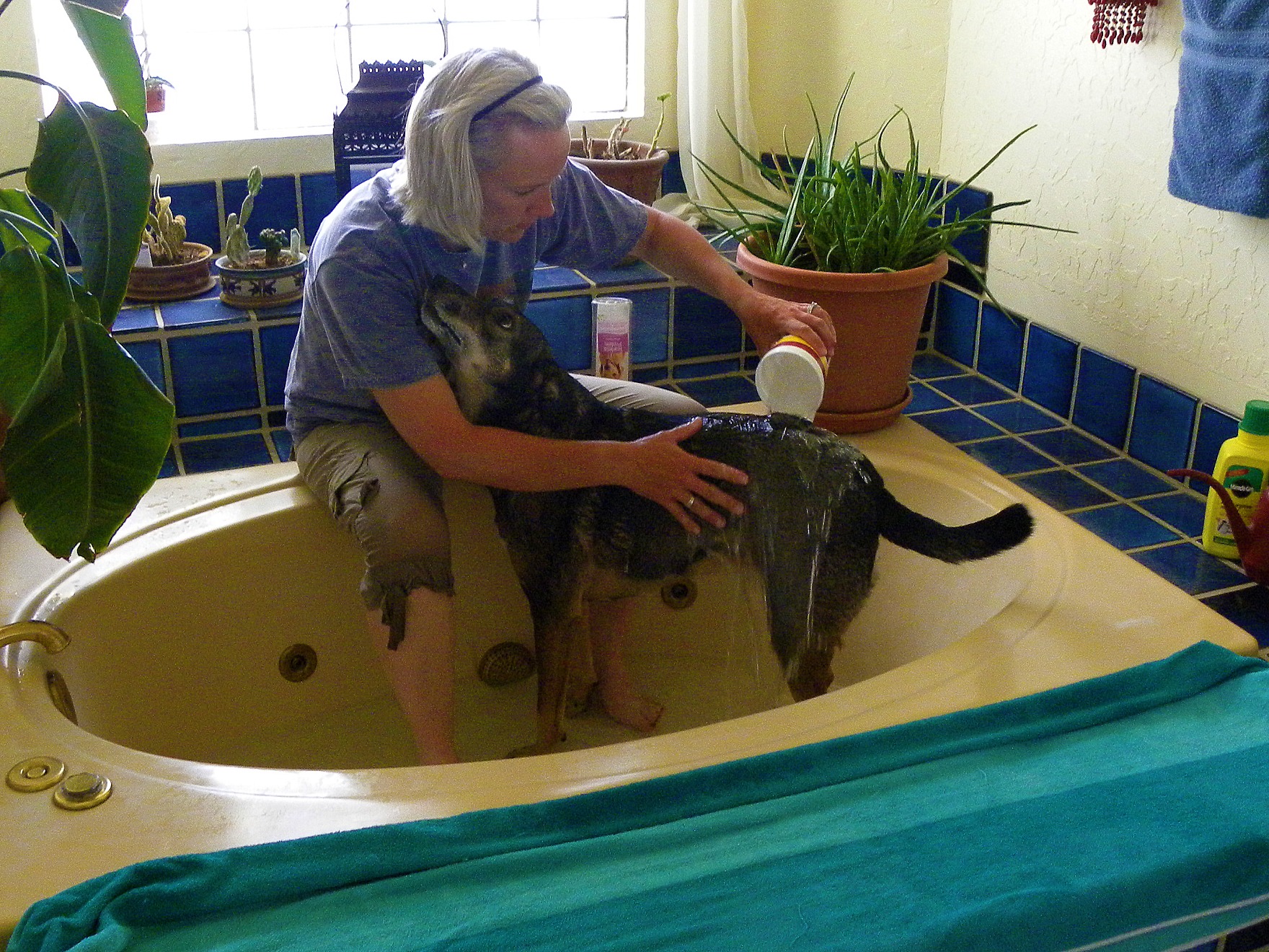 Having my mom; aka Memaw, here for a visit is always a blessing because she helps us with so many things. On Saturday, she helped me give the girls and Whisky a bath.