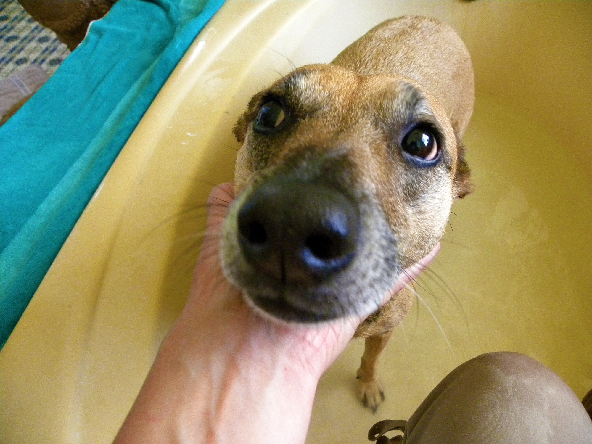 Kassie’s favorite part of getting a bath is being dried off.