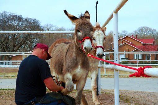 After getting a halter on Fergus for the first time three weeks ago, we did the Happy Dance in anticipation of his feet being trimmed at our farrier’s next visit. Fast forward to yesterday evening…