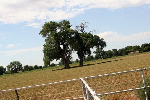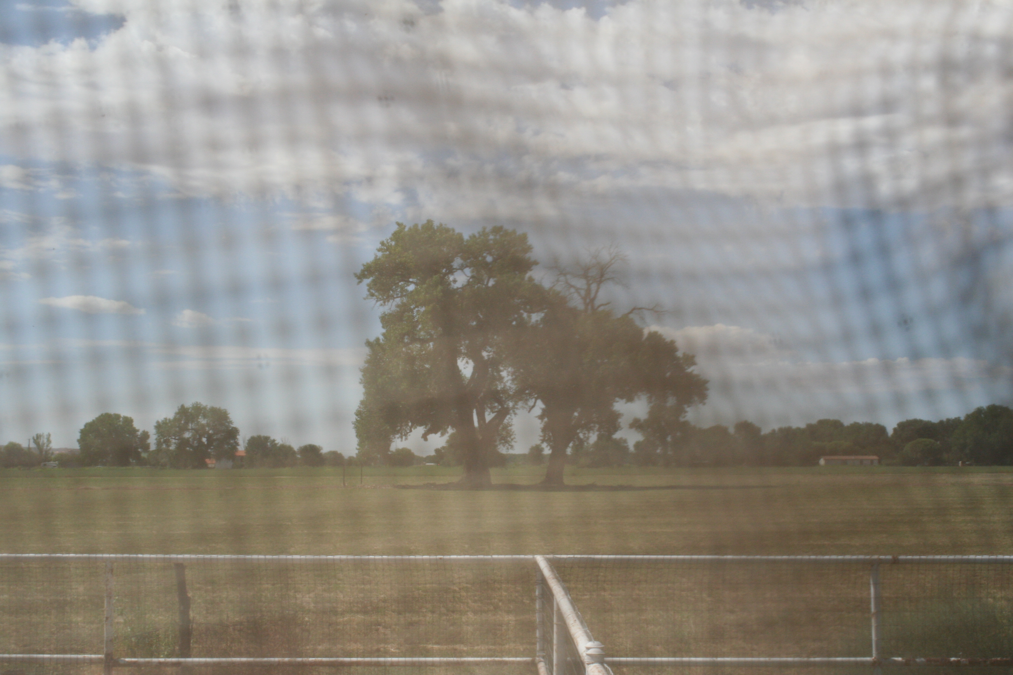 And the cottonwoods through a fly mask. You can see in this picture that the fly mask was farther away from the camera lens than in the first two pictures (the farther away the mask, the more you can distinguish the netting).