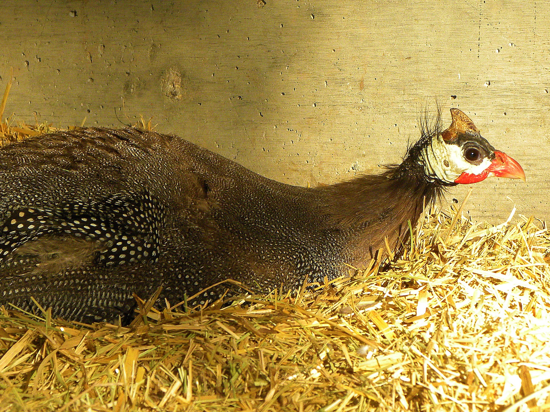 Gladys spent Friday night here with her babies. On Saturday, she returned to Mr. Gladys and the rest of her guinea family in our neighbor’s pasture.