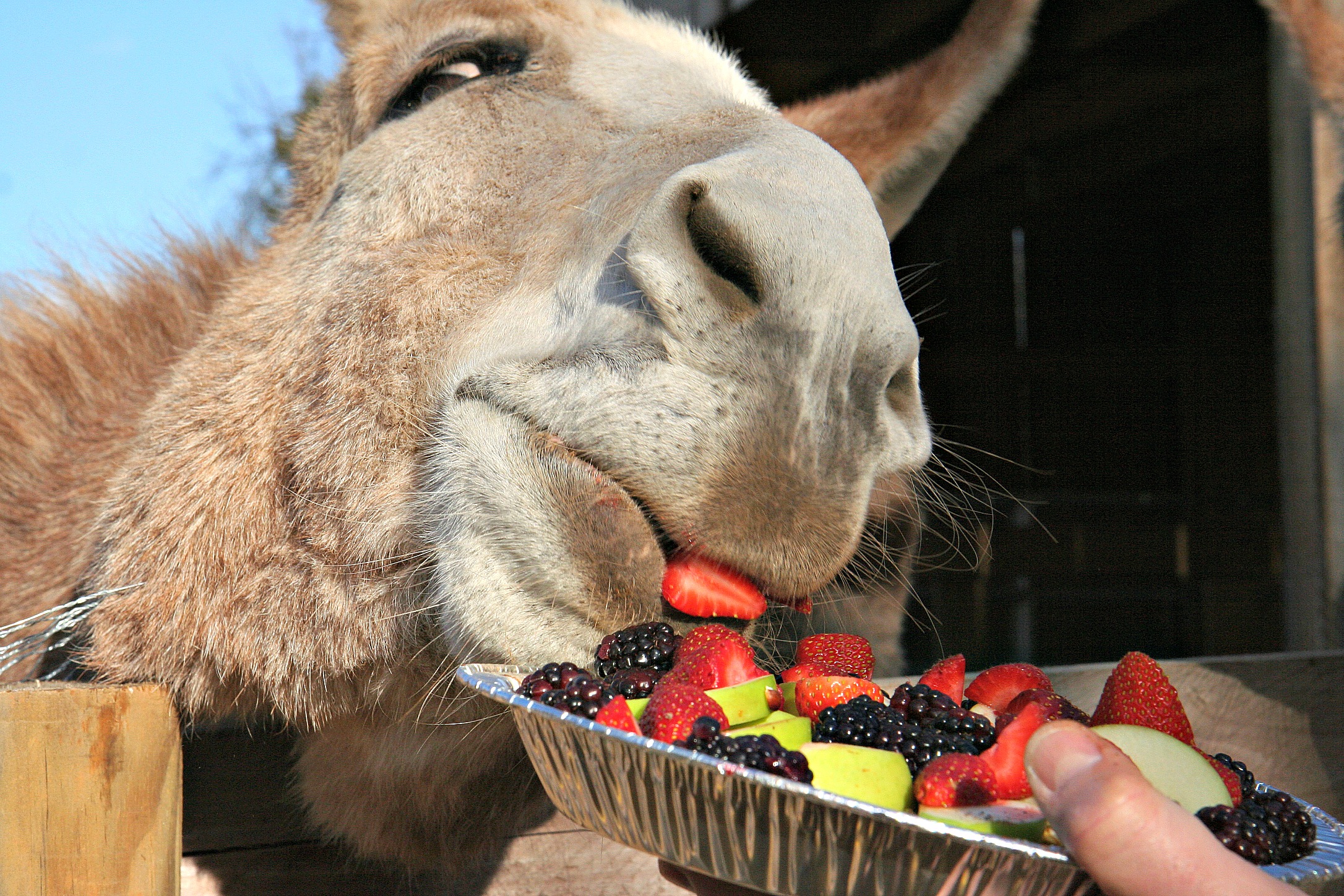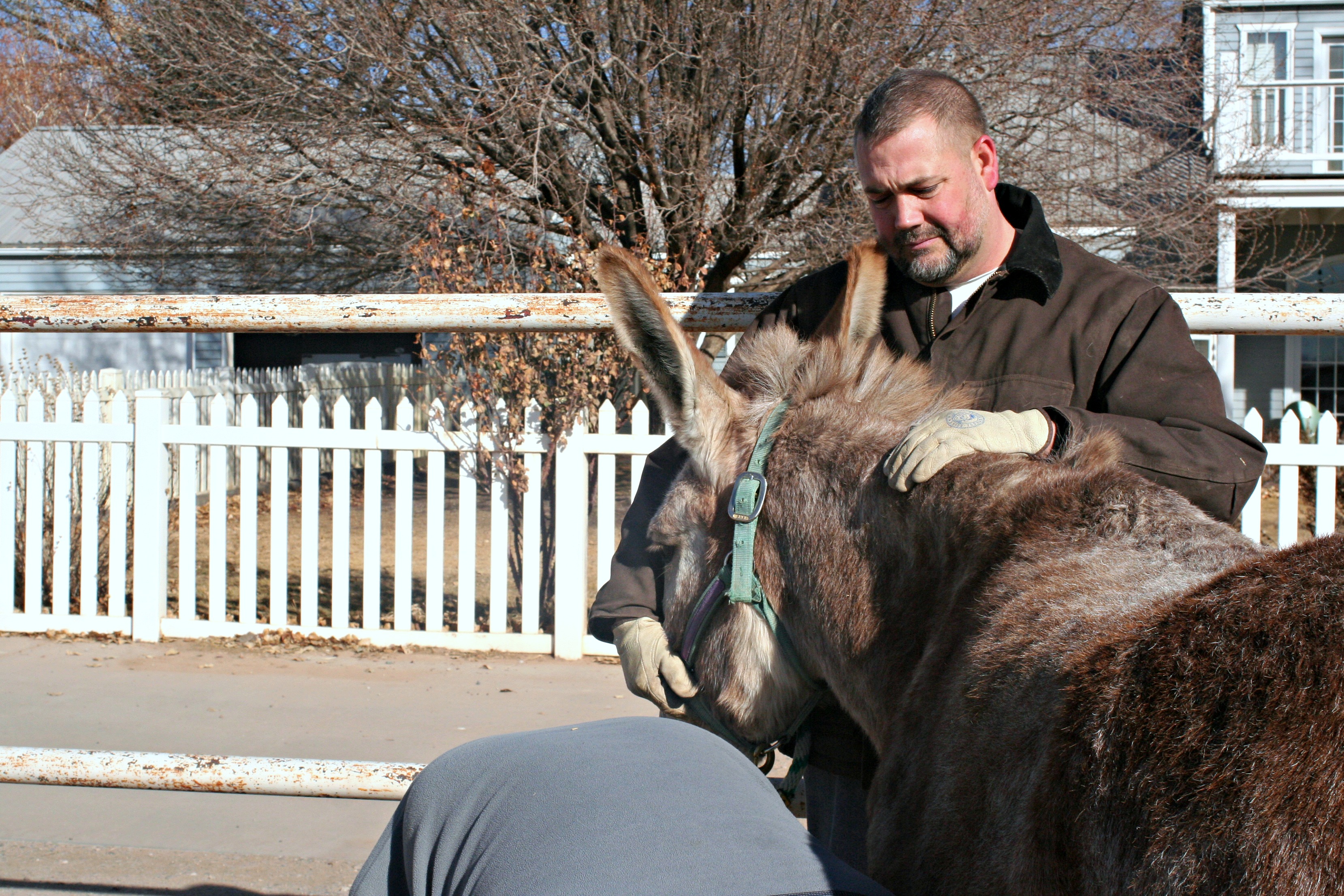 Besides being very gentle and loving, we soon found out that Harriet could really belt out an ear-splitting bray. For the first several months she brayed almost non-stop. We couldn’t figure out if she just missed her old home or her foster home and was just unhappy, or quite possibly the bossiest donkey on Earth. It seemed like most of braying was going on at night, probably because we couldn’t sleep through it. Linda Carson of The 7MSN Ranch looked into our sandbagged eyes one day and suggested leaving a light on at night. Like a gift from the Sandman himself, the nightly singing ceased. These days our beautiful girl brays to greet us when we come out in the morning and when our cars pull in the driveway in the evenings. There’s no better sound in this world than being greeted after a long day at work by Harriet.