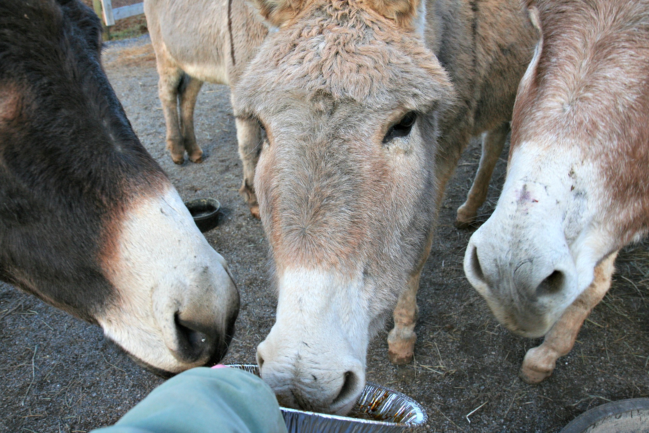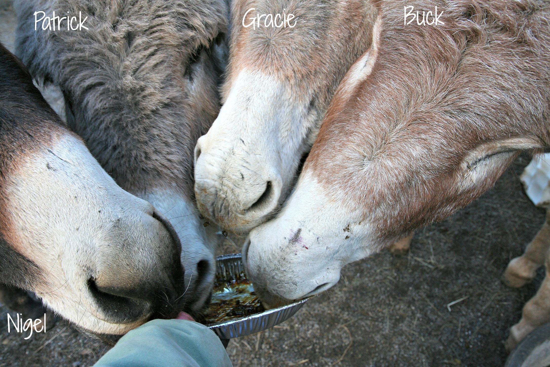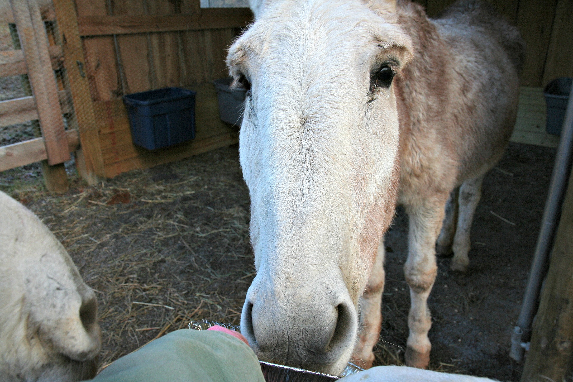 After the ultrasound Harriet came home to her herd who was waiting to hear all about her adventure. It was still cold out, so we decided to put a blanket on her to help insulate where she’d been shaved. Big mistake. The others gasped in horror at the sight of the blue thing that had attacked poor Harriet and ran away snorting and pooping to the top of the pasture. Not knowing what was going on Harriet ran after them, braying and pleading for them to stop. After two days of this, we gave up and left the blanket off. It’s kind of funny to think about now, but at the time it was so sad to watch. Harriet became an eating machine: equine senior feed, alfalfa cubes, her absolute favorite rice bran, and all the hay she could eat. She had good days and bad days, most were good though. Harriet demanded her food on schedule and was given anything she wanted.
