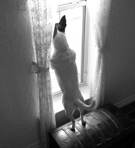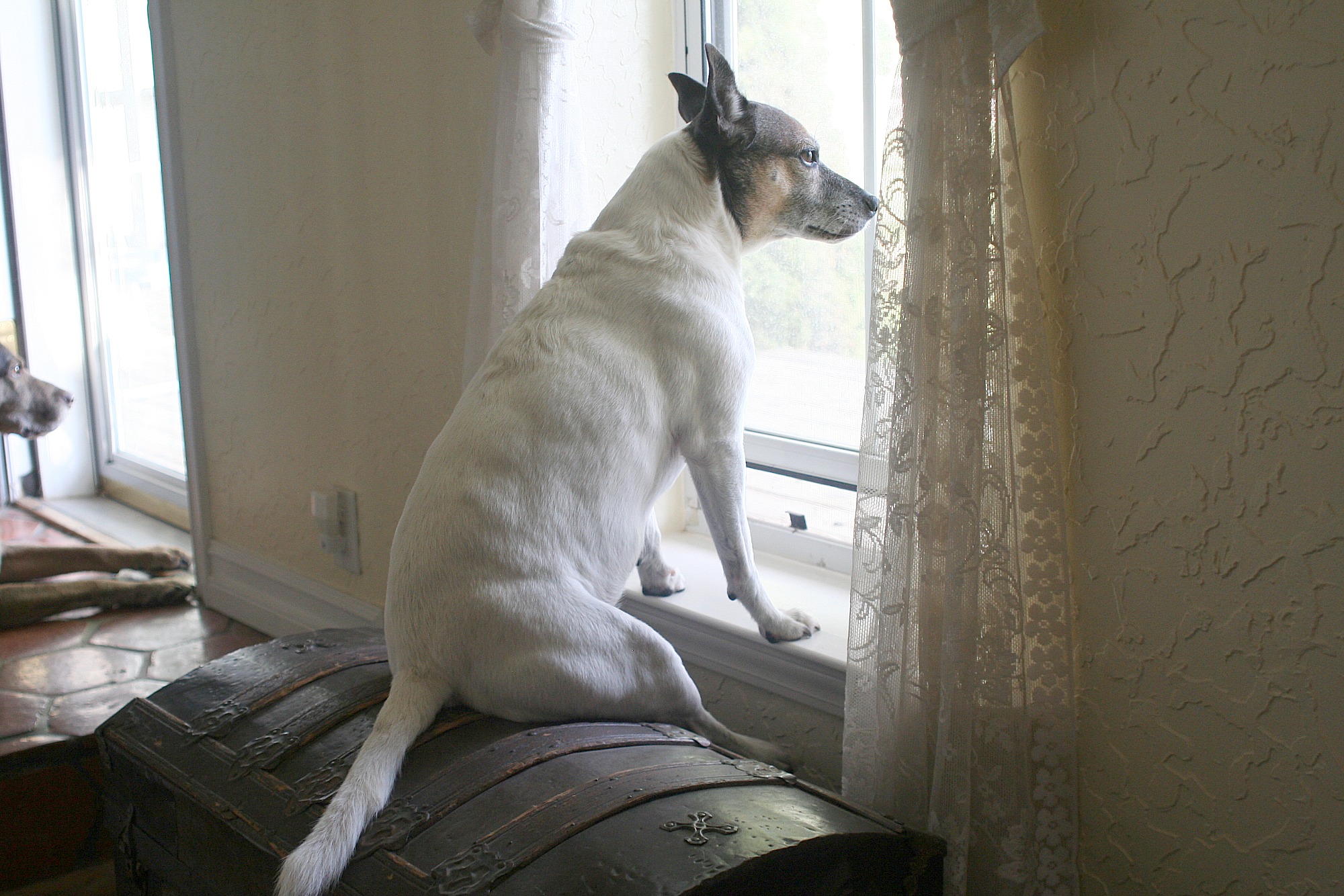 Kassie is always on the lookout for squirrels. She takes her job of keeping the Morning Bray Farm squirrel population in check very seriously.