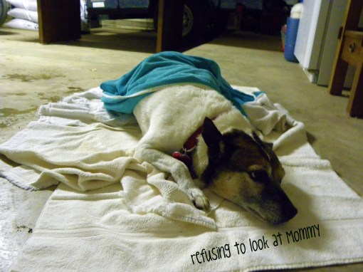 Having my mom; aka Memaw, here for a visit is always a blessing because she helps us with so many things. On Saturday, she helped me give the girls and Whisky a bath.