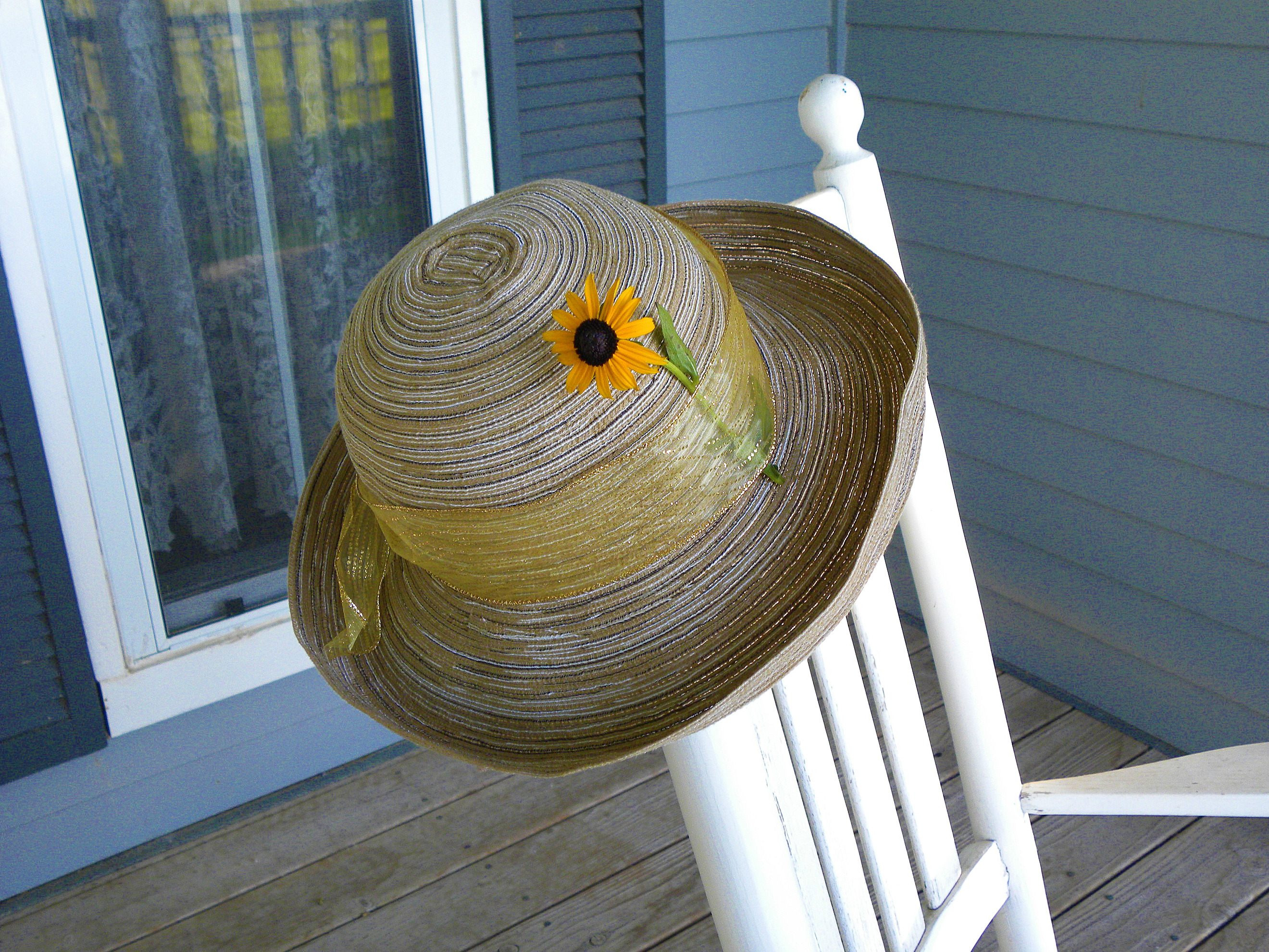 A few of you shared kind comments about my hat in yesterday’s post. A couple of you suggested that my hat needed a flower. Since it’s a Maryland kind of weekend here at Morning Bray, Don went out and picked one of our Black-eyed Susans and slipped it into the brim of my hat with a ribbon.