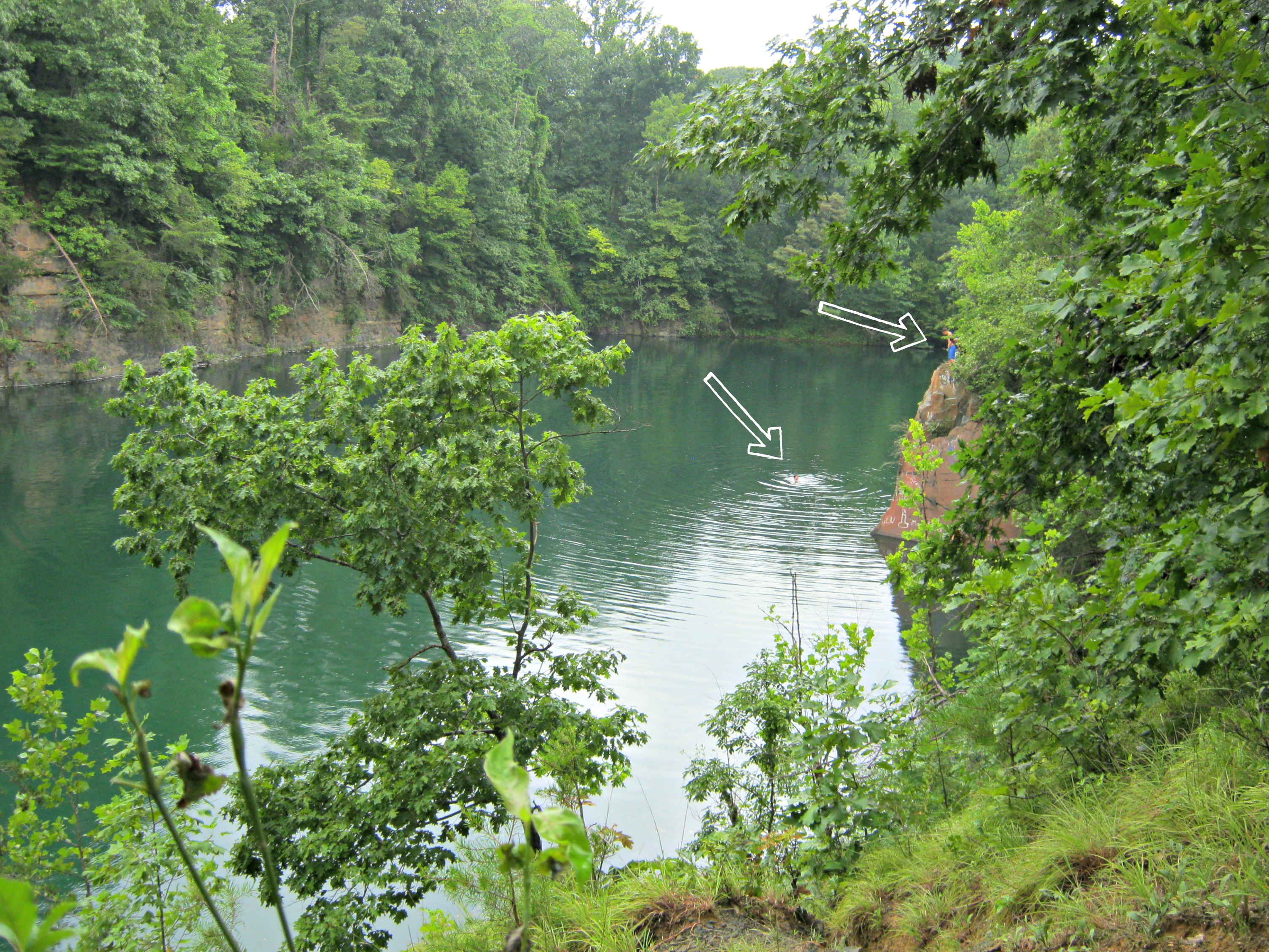 Apparently, the quarry is still today an attractive nuisance for some young adults: