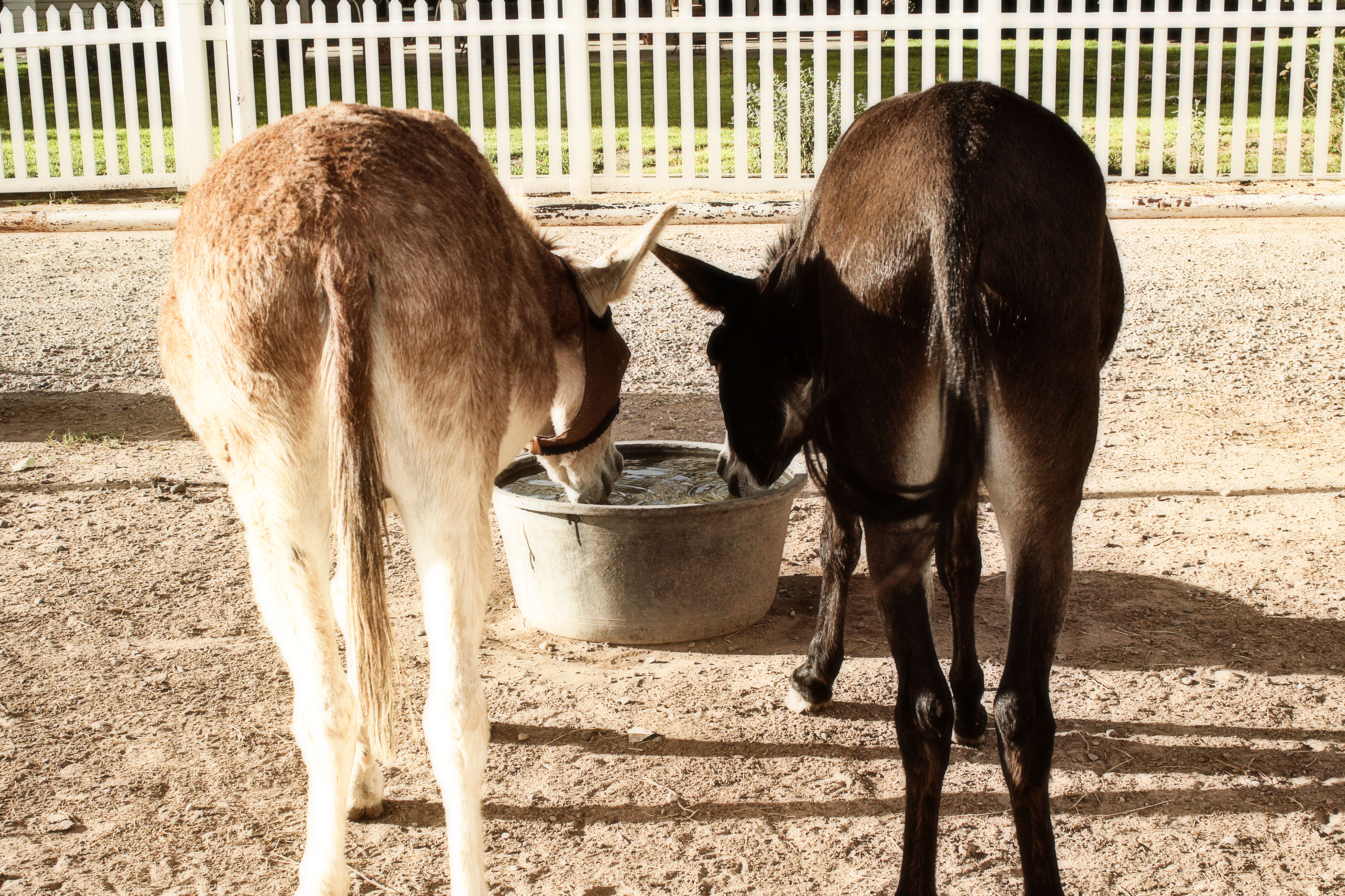 “With 6 donkeys in the family now, could you do a little tutorial on identifying each one. Obviously, Ells is the only redhead, but I struggle to tell them apart in a group photo. I believe that Buck is red, but much darker. The rest leave me wondering.”