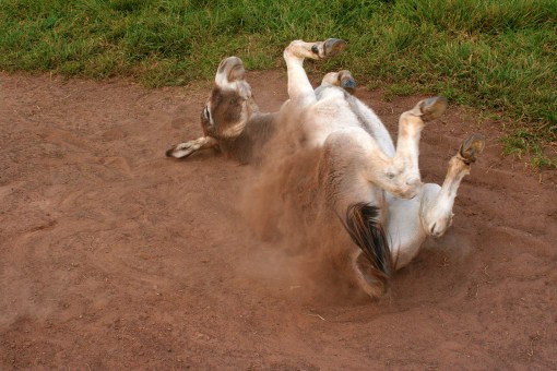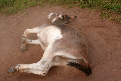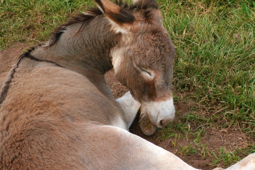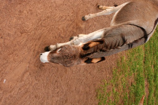 So much fun makes a donkey boy tired. Drop and roll is an excellent relaxation technique.