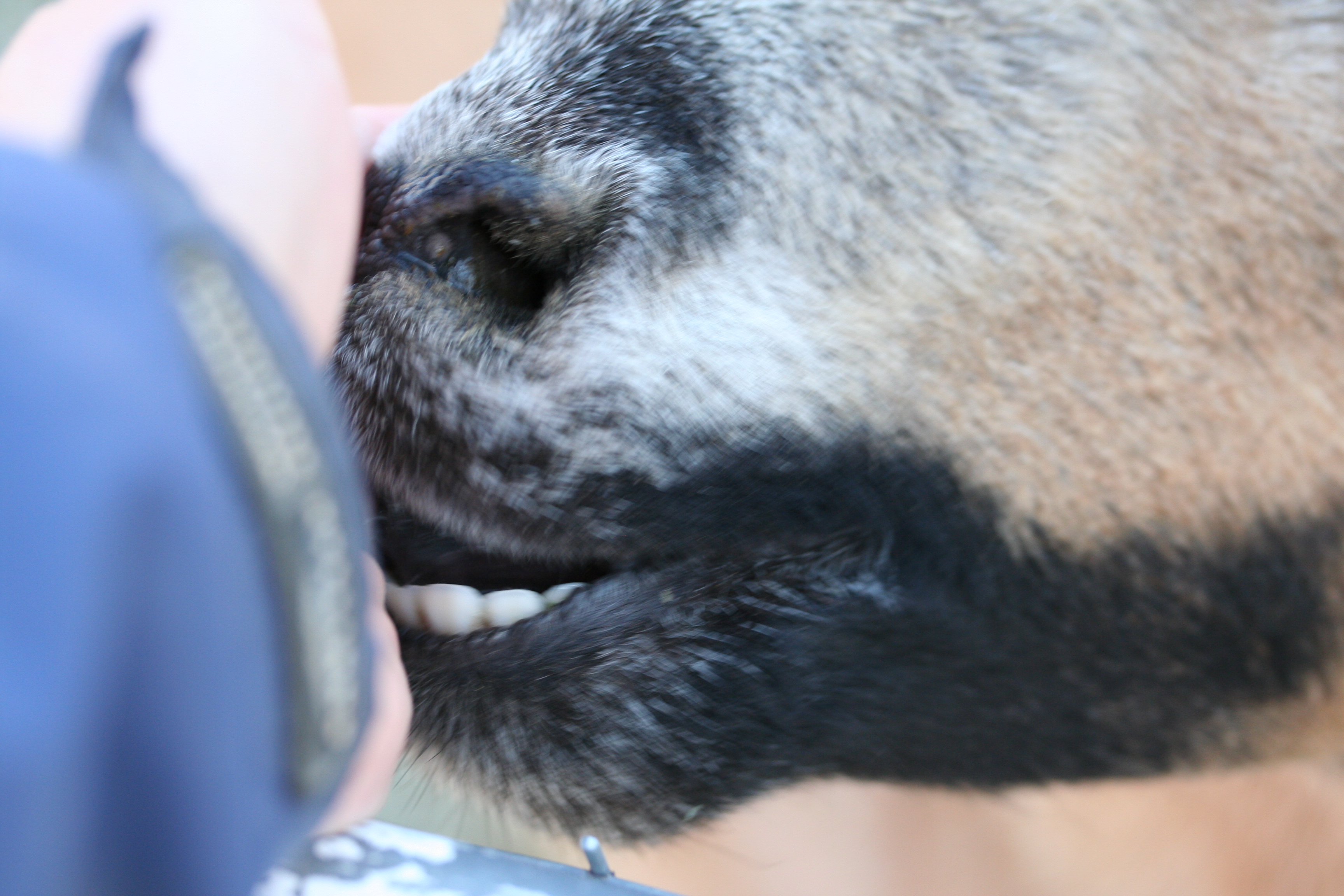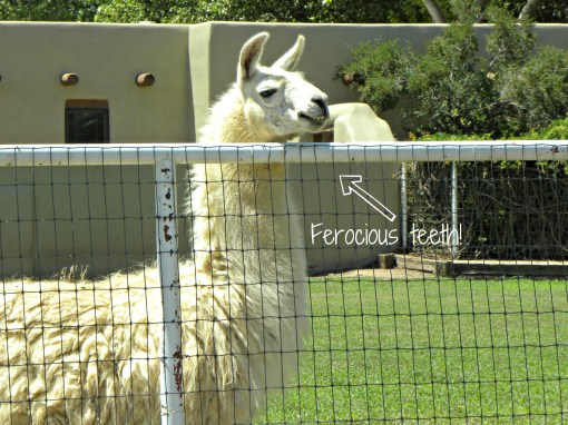 We were footloose and fancy-free until we showed up at our second herd of llamas. This llama was very unhappy with our arrival and made sure to tell us by growling and showing us his teeth. I had never seen this behavior before: