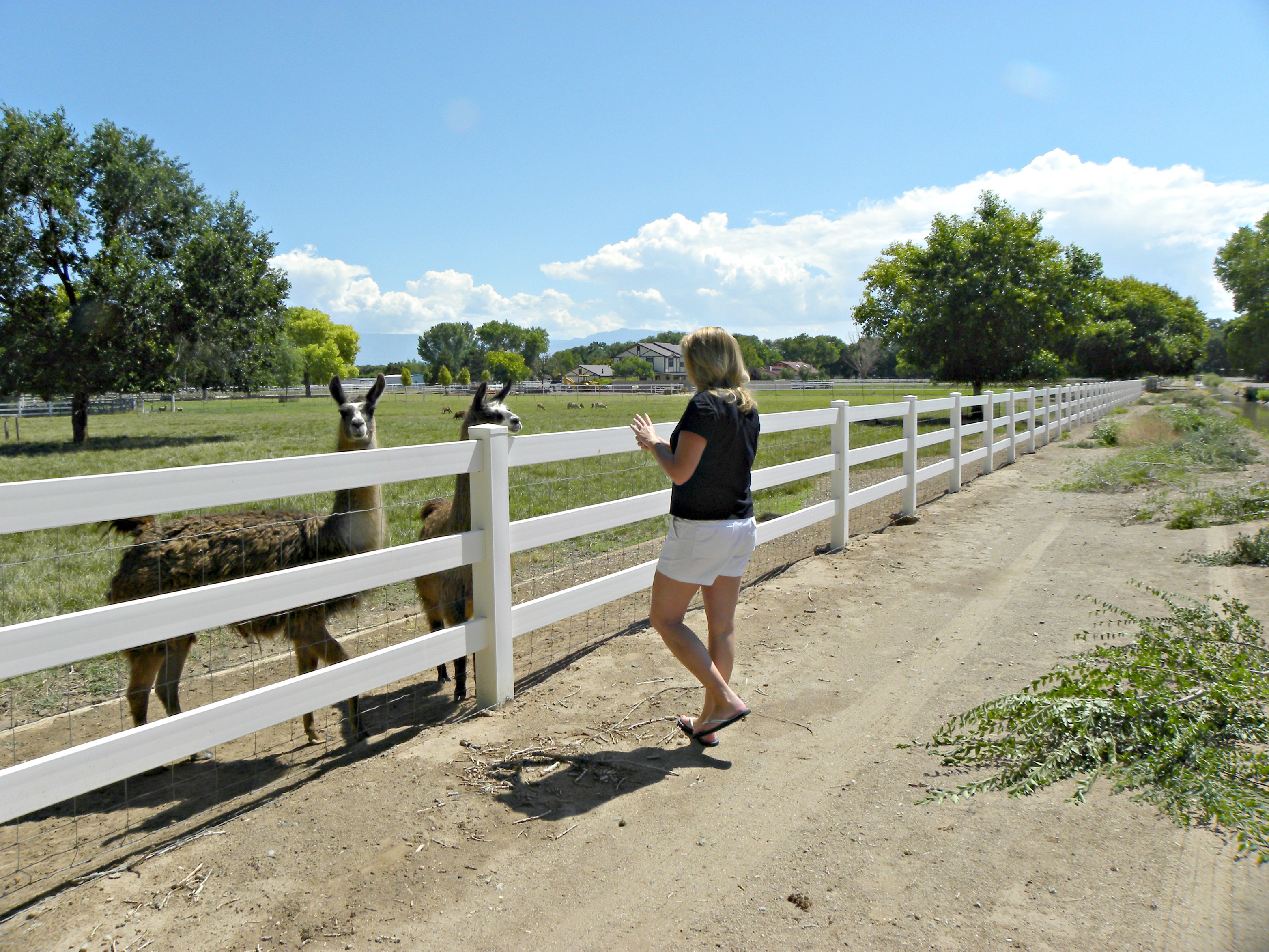 While Don’s sister Debbie was here for a visit last weekend, we decided to take a walk around the neighborhood. We saw llamas: