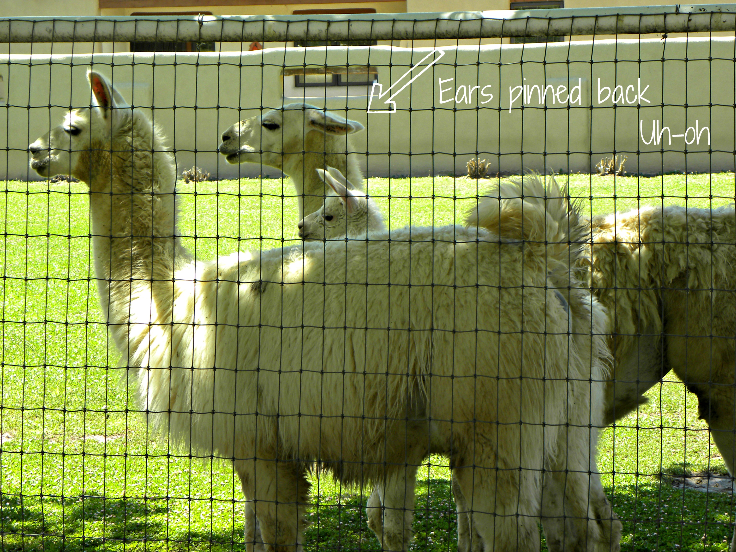 Our friend Danni at Critter Farm once warned us what happens when a llama pins its ears back. It’s not meant to be pretty.
