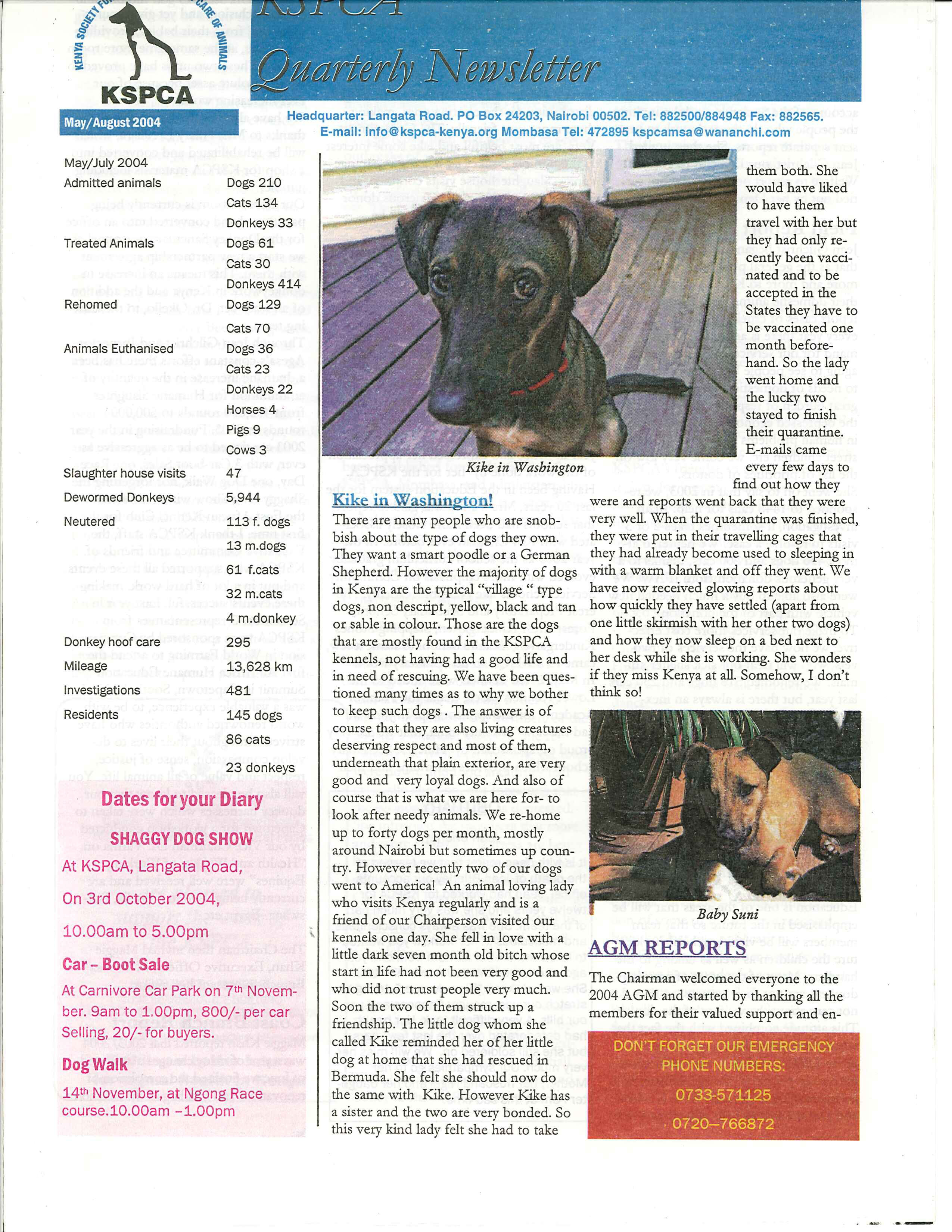 I was in Nairobi, Kenya when I met Kike and Suni. My business partner was the Chairperson for the Kenya SPCA, and so each time I visited, a trip to the KSPCA was in order.