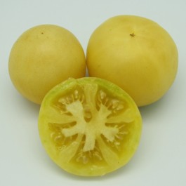 We are proud to introduce this rare, old German heirloom that produces lovely, little 2 oz. cream to pale yellow jewels that are very juicy and sweet. Large vines set high yields, and tender fruit are globe shaped; skin is shiny and silky smooth.