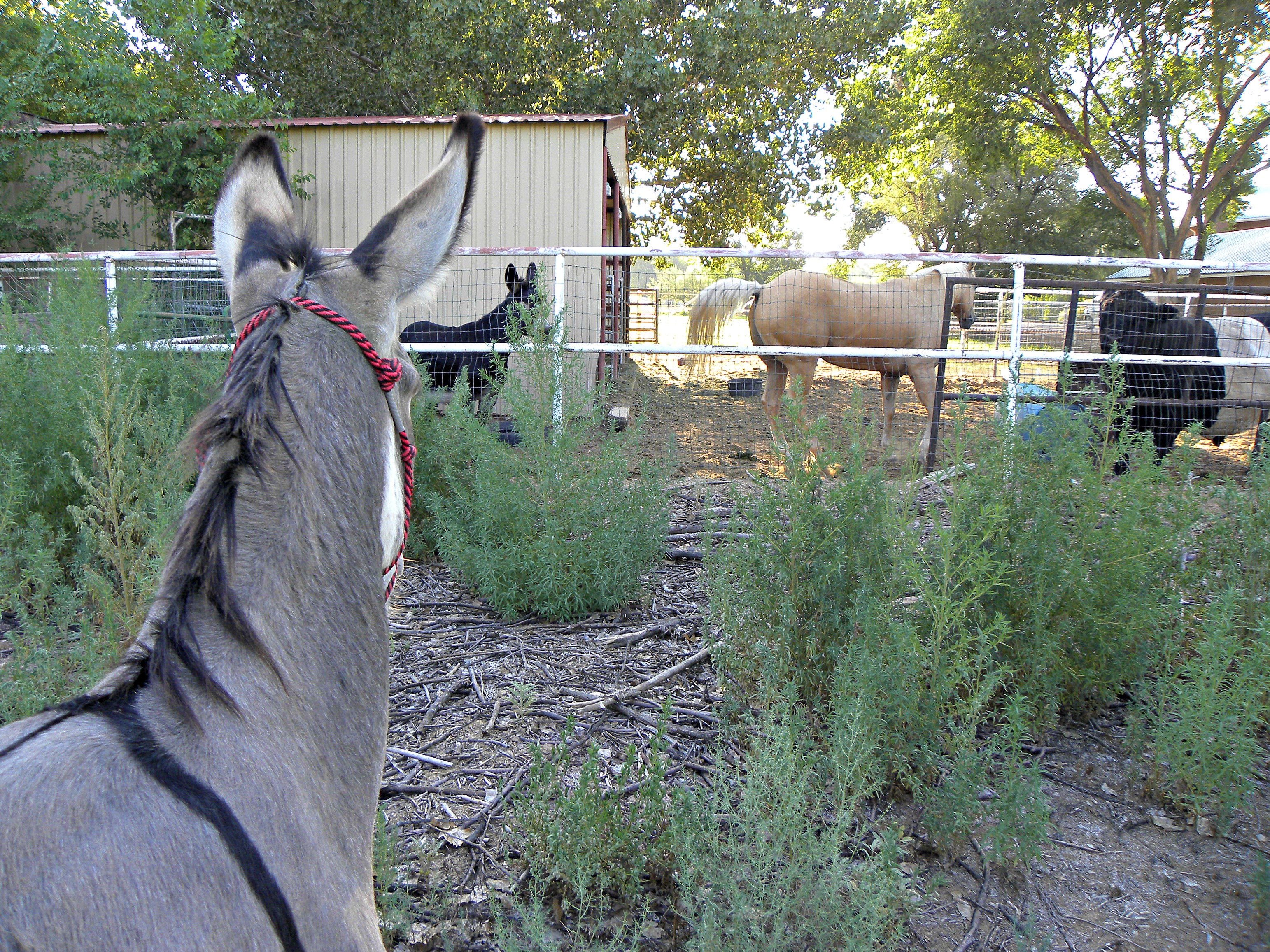 His confidence level is already high, but If he’s going to walk in parades, become a therapy donkey and be an all around ambassador for donkeydom, he needs to be okay with anything and everything.